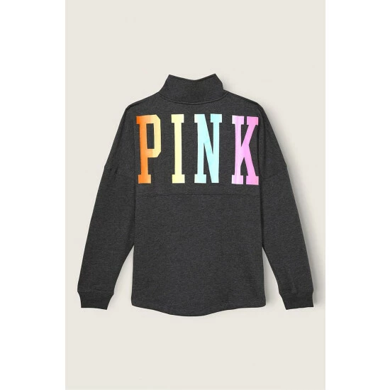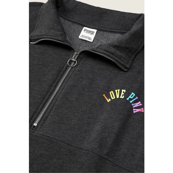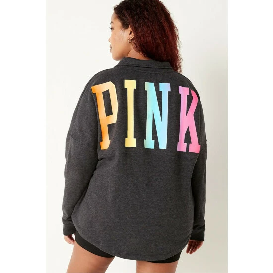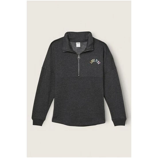 Oversized fit Mockneck collar neckline Zip closure Side pockets Rib cuffs 28.5” body length Imported cotton/polyester