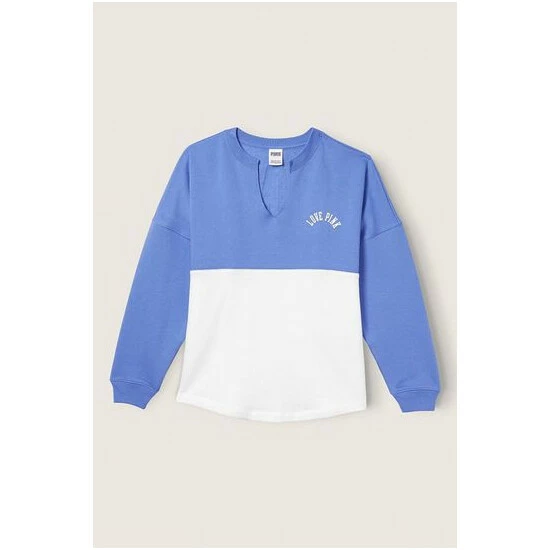 Oversized Fit. Crew Neckline with Notch Detail. Rib Cuffs & Neckband. Yoke Seaming Details. 28.5” Body Length.