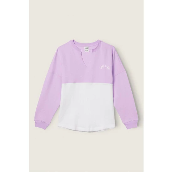Oversized Fit. Crew Neckline with Notch Detail. Rib Cuffs & Neckband. Yoke Seaming Details. 28.5” Body Length.