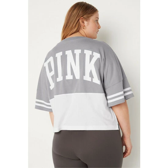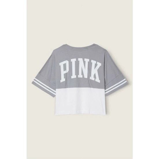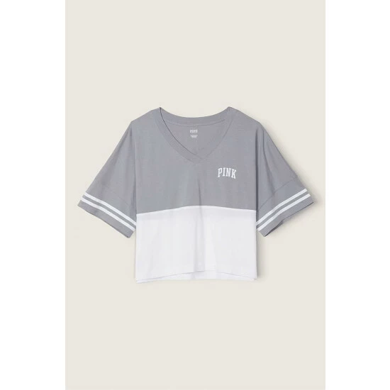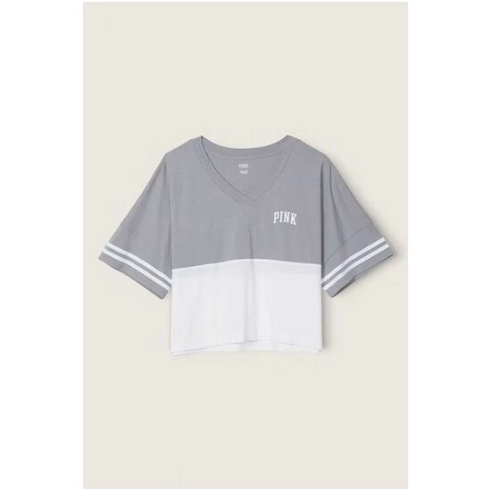 Victorias Secret PINK Victoria’s Secret PINK Varsity Short Sleeve Crop V Neck Tee