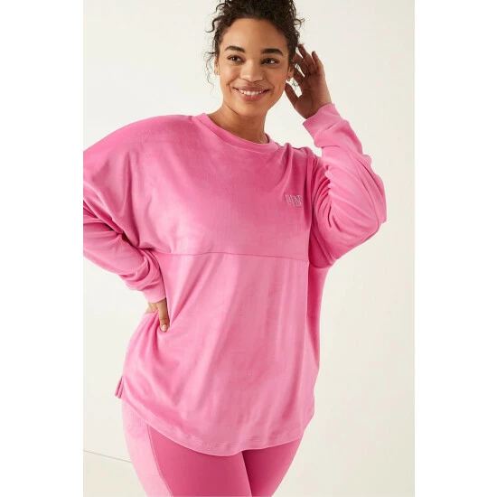 Partially made from recycled materials Oversized fit Crew neckline 28.5″ body length Imported Body: recycled polyester/polyester/elastane