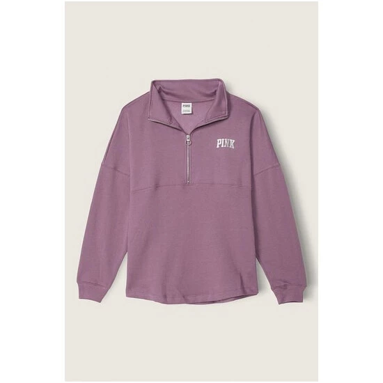 Victorias Secret PINK Victoria’s Secret PINK Victoria’s Secret PINK Varsity Half Zip Sweatshirt Mauve Ice