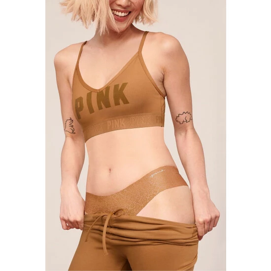 Victorias Secret PINK Victoria’s Secret PINK Warm Brown NoShow Soft Lace Cheekster Panty