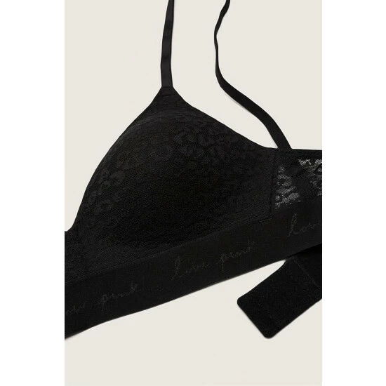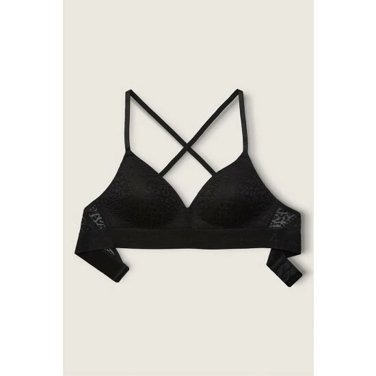 No-show allover lace that’s smooth under everything. No underwire. No push. Script logo elastic bottom band. Fully adjustable straps. Wear classic or cross-back. Hook-and-eye back closure.