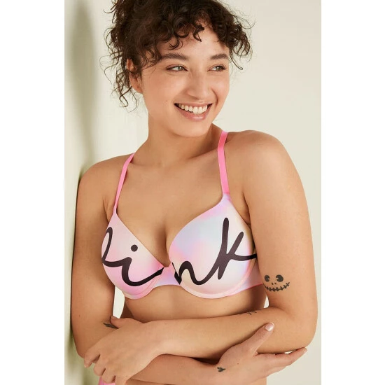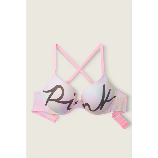 Structured, underwire cups. Push-up. Fully adjustable straps – wear classic or cross-back. Hook-and-eye back closure.