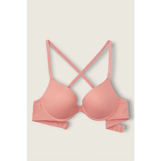 Structured, underwire cups. Push-up. Fully adjustable straps – wear classic or cross-back. Hook-and-eye back closure.