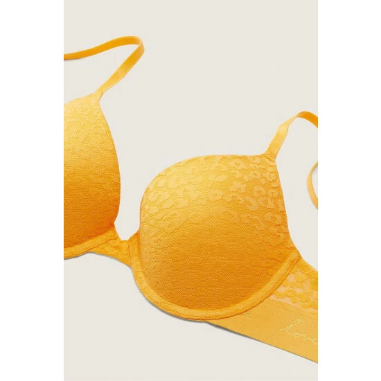 No-show allover lace that’s smooth under everything. Structured underwire cups. Push-up. Script Logo. Elastic bottom band. Fully adjustable straps – wear classic or cross-back. Hook-and-eye back closure.