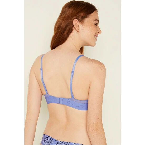 No-show allover lace that’s smooth under everything. Structured underwire cups. Push-up. Script Logo. Elastic bottom band. Fully adjustable straps – wear classic or cross-back. Hook-and-eye back closure.