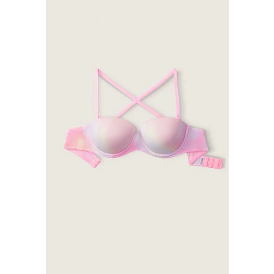 Push-up Soft padding. Fully adjustable and removable straps – wear classic, crossback or strapless. Hook-and-eye back closure. No-slip silicone grip strip at top and bottom edge.