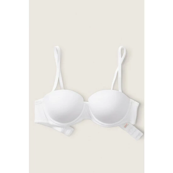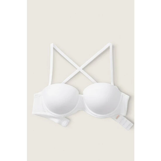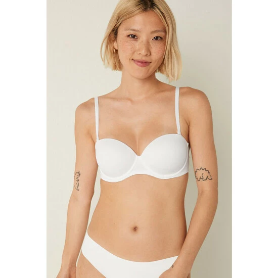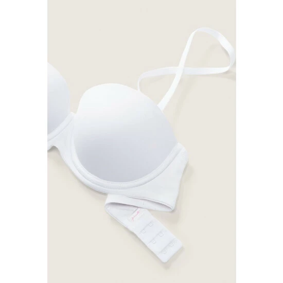 Push-up Soft padding Fully adjustable and removable straps – wear classic, crossback or strapless Hook-and-eye back closure No-slip silicone grip strip at top ; bottom edge Imported: recycled nylon/spandex.