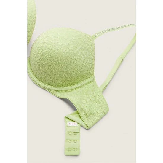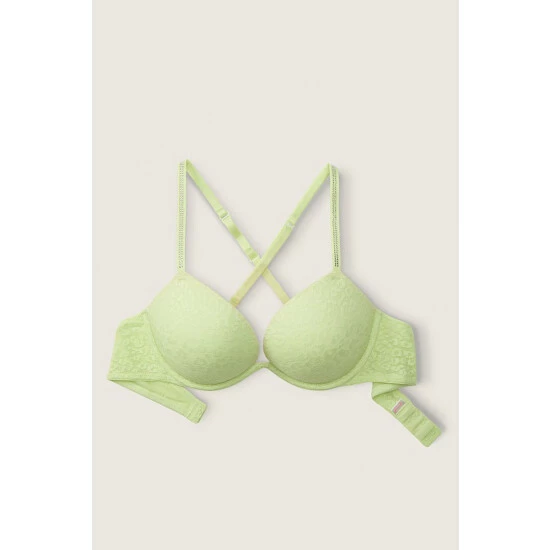 No-show allover lace that’s smooth under everything. Double bump padded cup. Most push. Fully Adjustable Shine straps – wear classic or cross-back Hook-and-eye back closure.
