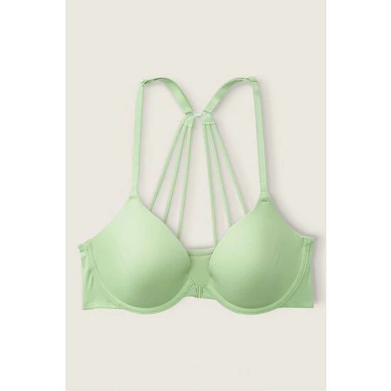 Structured, underwire cups Lightly Lined Fully adjustable front straps – with strappy back detail that can be worn as classic or racerback with convertible hook Front closure clasp Imported.